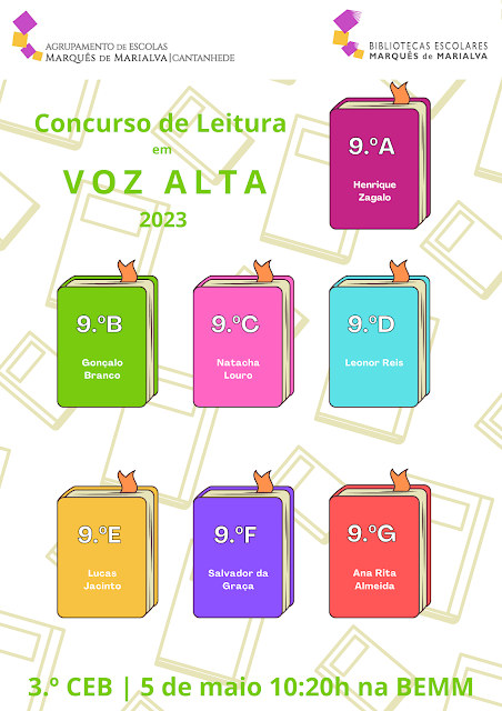 Dias 3 e 5 de maio são dias de provas do Concurso de Leitura em Voz Alta. às 10:20 na Biblioteca da escola-sede.
